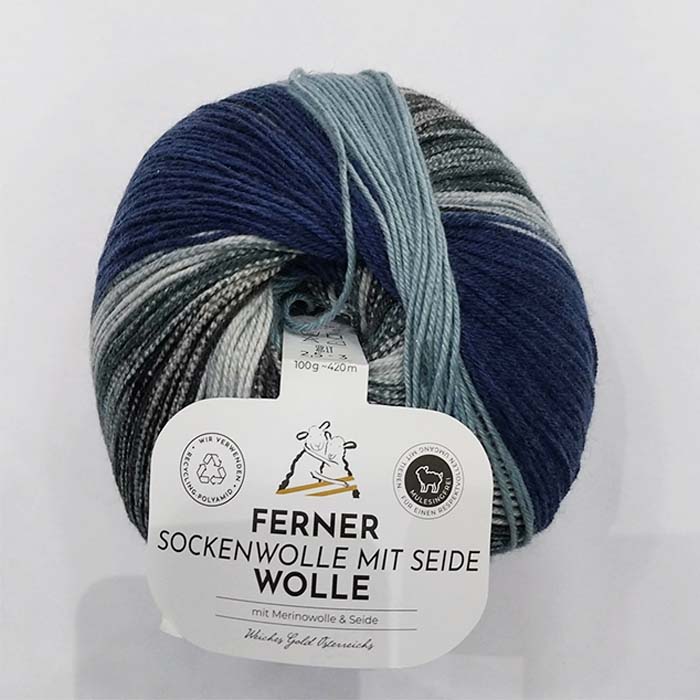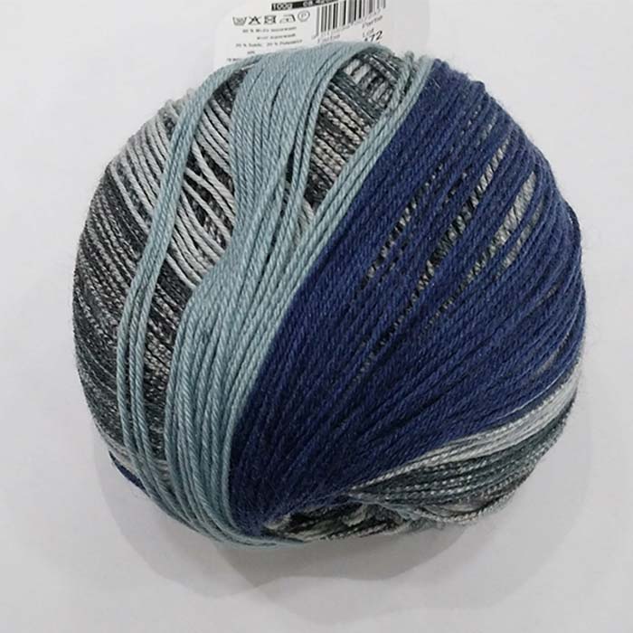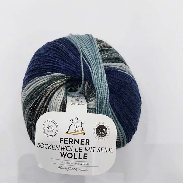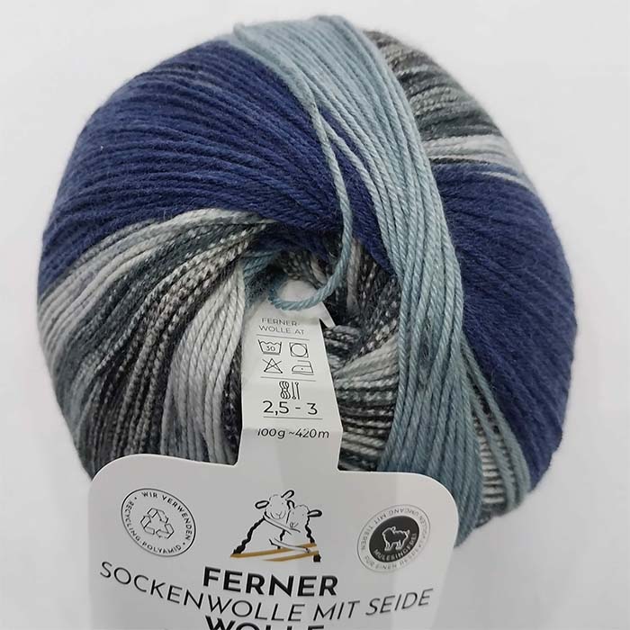 Die Wolle besteht aus 60% Wolle, 20% Seide, 20% Polyamid.