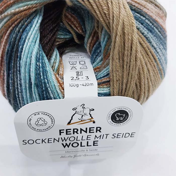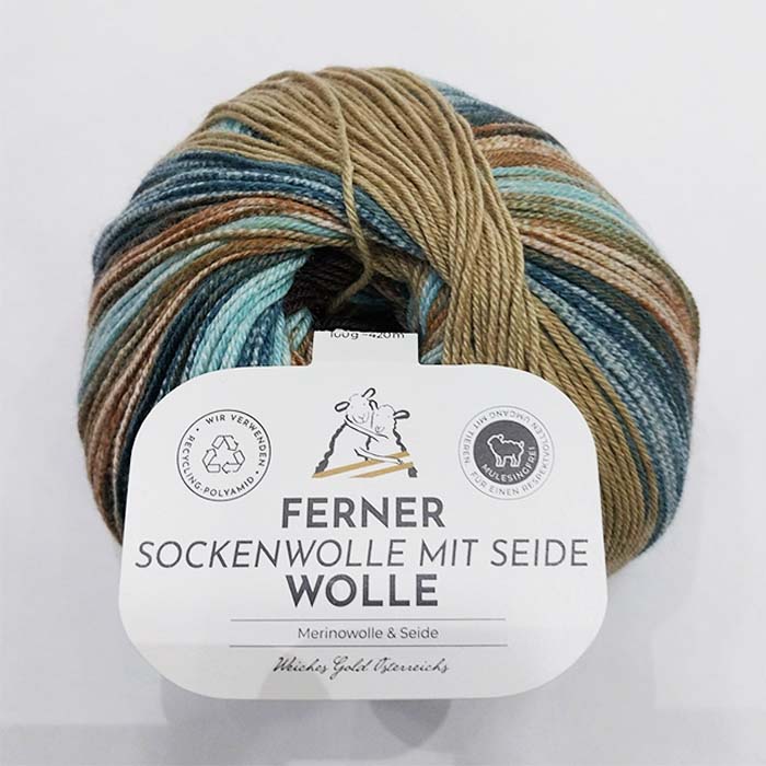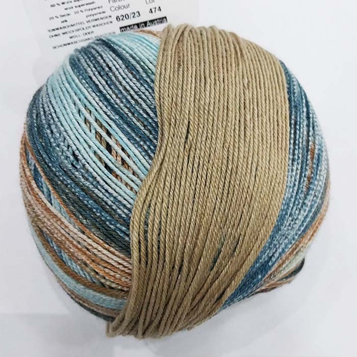 Die Wolle besteht aus 60% Wolle, 20% Seide, 20% Polyamid.