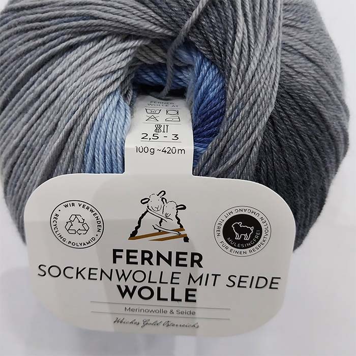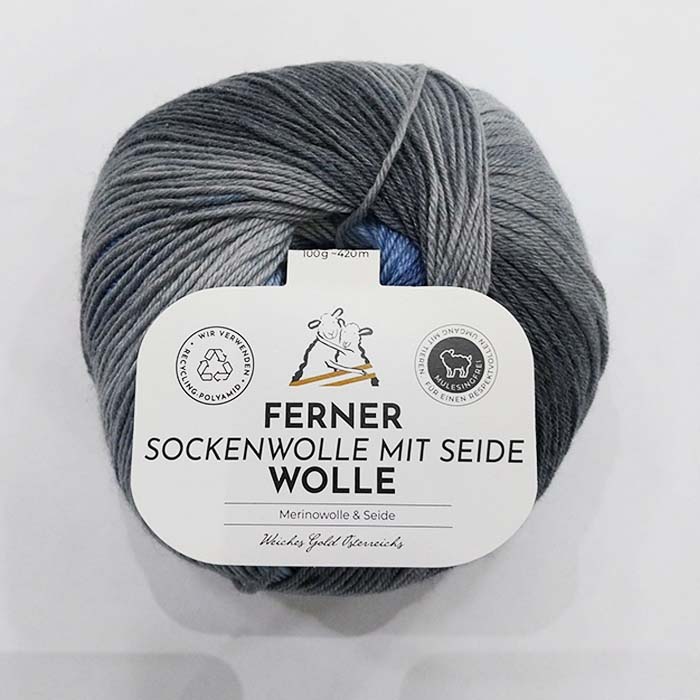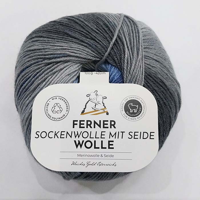 Die Wolle besteht aus 60% Wolle, 20% Seide, 20% Polyamid.