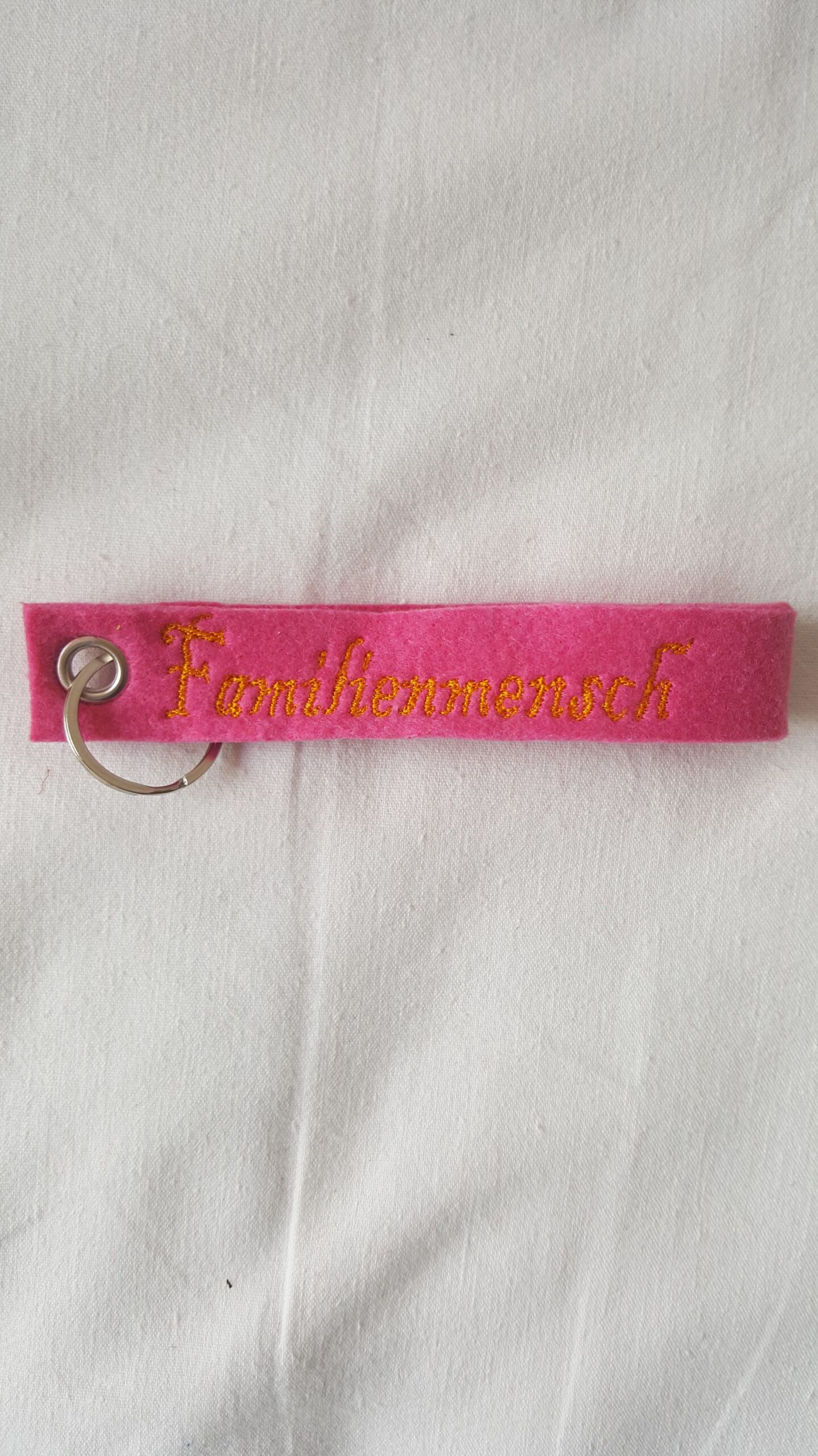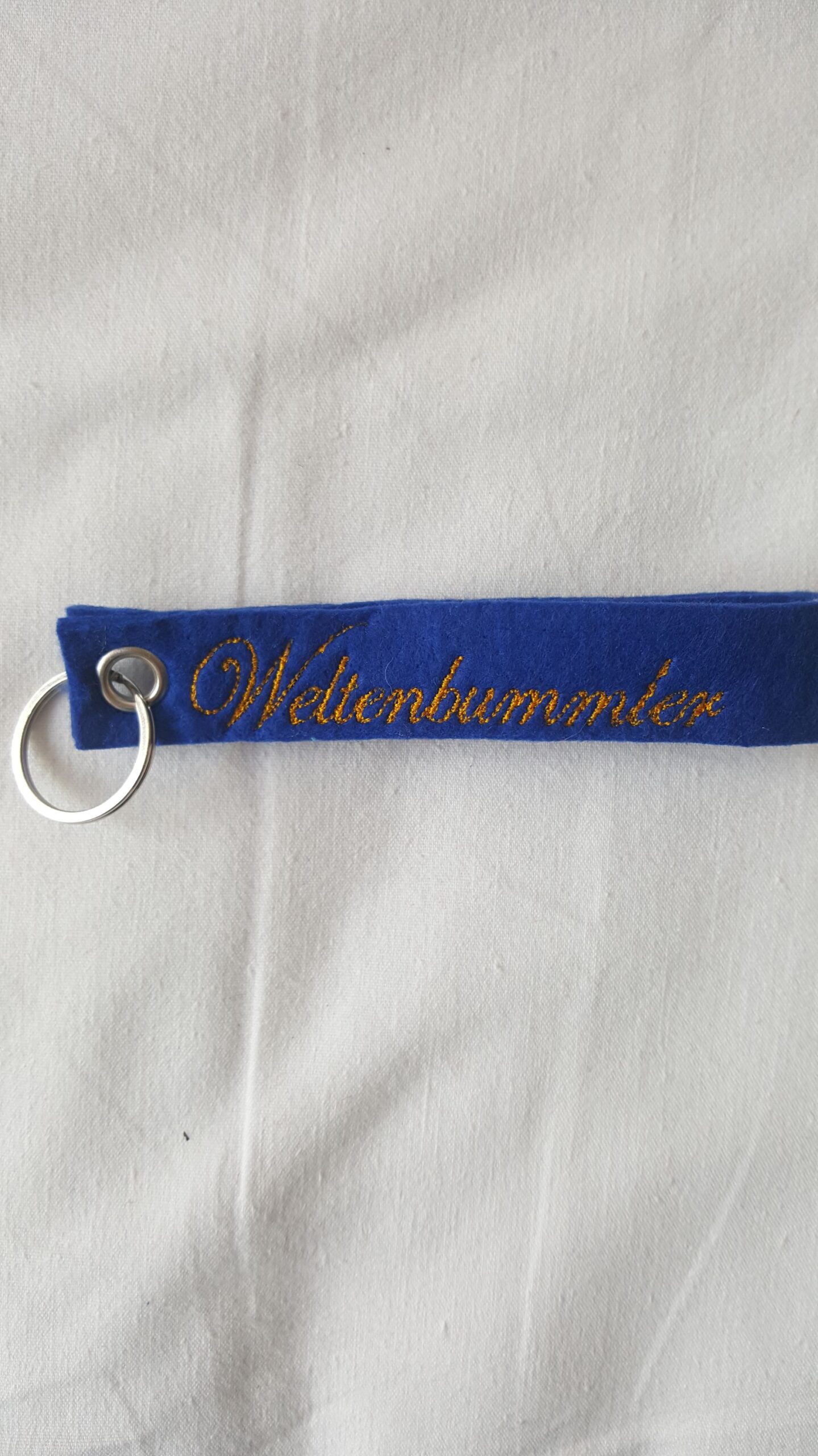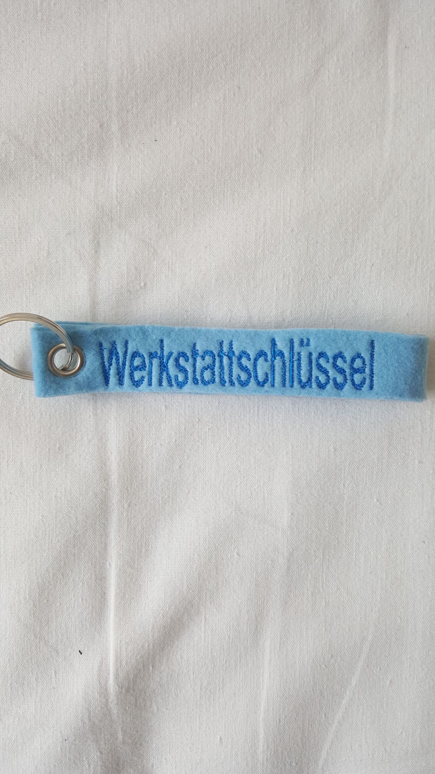 Lange Schlüsselbänder zur individuellen Bestickung. Ob mit dem Rufnamen, Autokennzeichen, Spielernamen oder dem Kosenamen des Partners – der Fantasie sind hier keine Grenzen gesetzt.